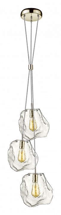 Оригинальный подвес на круглом основании из металла с прозрачными проводами и стеклянным плафоном, напоминающим прозрачную глыбу льда. 3хЕ27