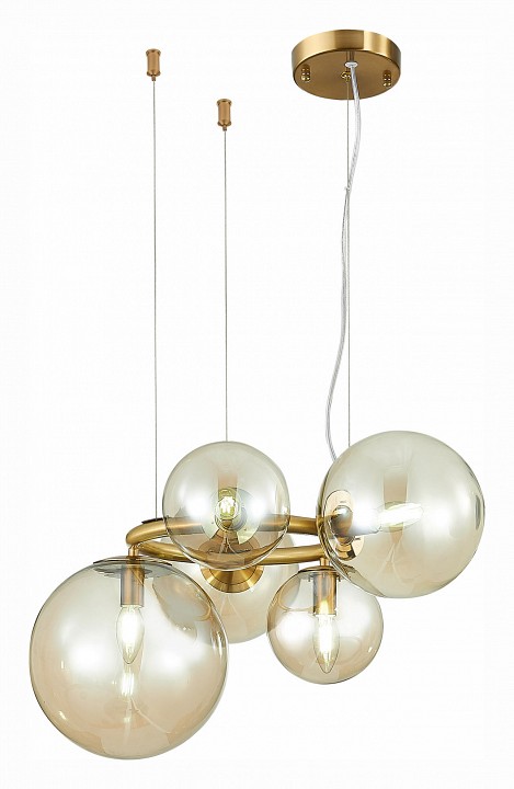 Изделие SL1162.303.05 от итальянского бренда ST Luce относится к коллекции Gorizia и отлично подойдет для установки на потолок спальни, оформленной в стиле модерн. Подвесная люстра ST Luce Gorizia SL1162.303.05 с плафонами в виде шаров осветит помещение площадью 11.1 кв.м. Для устройства рекомендуется использовать лампы накаливания с цоколем E14 и мощностью 40 W. Основными материалами для производства используется стекло и металл и может использоваться для натяжного потолка. Преимущественно представляется в цвете Латунный и Коньячный.