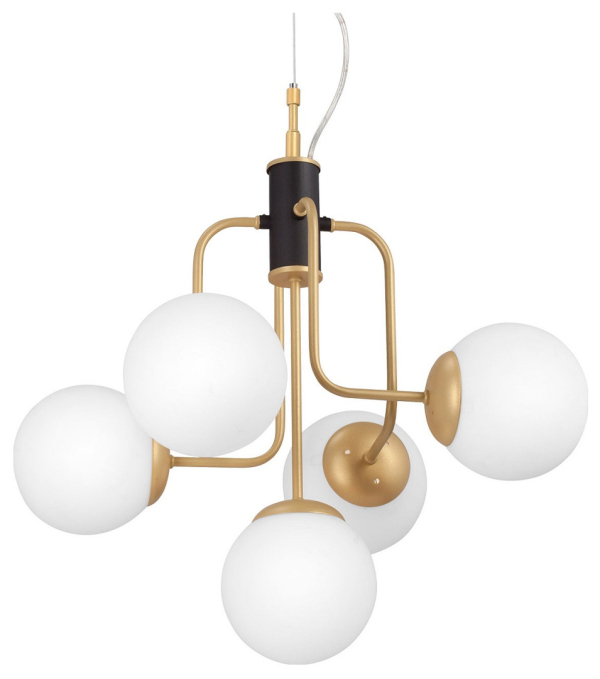 Изделие V3999-8/5S от российского бренда Vitaluce и отлично подойдет для установки на низкий потолок в гостиной, оформленной в стиле арт-деко. Подвесной светильник Vitaluce V3999-8/5S с плафонами в виде шаров осветит помещение площадью 15 кв. м. Для устройства рекомендуется использовать лампы накаливания с цоколем E14 и мощностью 40 W. Основными материалами для производства используется металл и стекло и может использоваться для натяжного потолка. Преимущественно представляется в цвете Золотой и Белый.