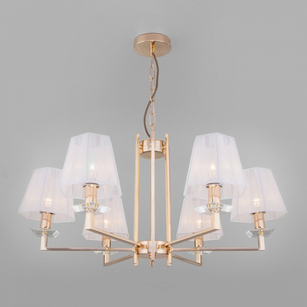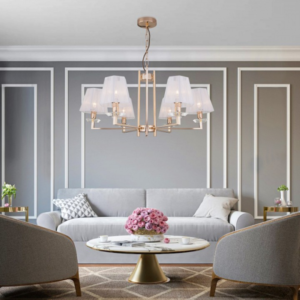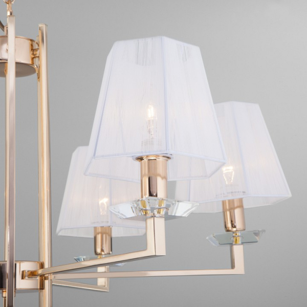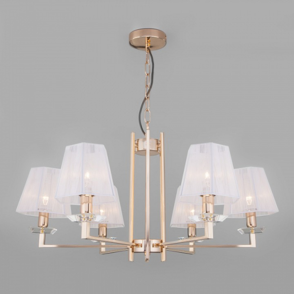 Изделие 60114/6 золото от российского бренда Eurosvet относится к коллекции Alegria и отлично подойдет для установки на потолок спальни, оформленной в стиле модерн. Подвесная люстра Eurosvet Alegria 60114/6 золото с пирамидальными плафонами осветит помещение площадью 13.3 кв. м. Для устройства рекомендуется использовать лампы накаливания с цоколем E14 и мощностью 40 W. Основными материалами для производства используется текстиль, металл и ткань и может использоваться для натяжного потолка. Преимущественно представляется в цвете Белый и Золотой.