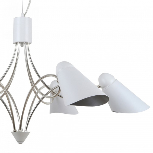 Изделие 2667-6P от немецкого бренда Favourite относится к коллекции Lovato и отлично подойдет для установки на потолок в гостиной, оформленной в дизайнерском стиле. Подвесная люстра Favourite Lovato 2667-6P с плафонами-конусами осветит помещение площадью 13.3 кв. м. Для устройства рекомендуется использовать лампы накаливания с цоколем E14 и мощностью 40 W. Основным материалом для производства используется металл и может использоваться для натяжного потолка. Преимущественно представляется в цвете Белый и Серебряный.