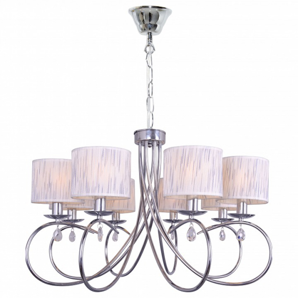 Изделие TL1193H-08CH от российского бренда Toplight относится к коллекции Mercy и отлично подойдет для установки на потолок в гостиной, оформленной в стиле неоклассики. Подвесная люстра Toplight Mercy TL1193H-08CH с цилиндрическими плафонами осветит помещение площадью 21.3 кв. м. Для устройства рекомендуется использовать лампы накаливания с цоколем E14 и мощностью 40 W. Основными материалами для производства используется текстиль, металл и ткань и может использоваться для натяжного потолка. Преимущественно представляется в цвете Белый и Серебристо-стальной.