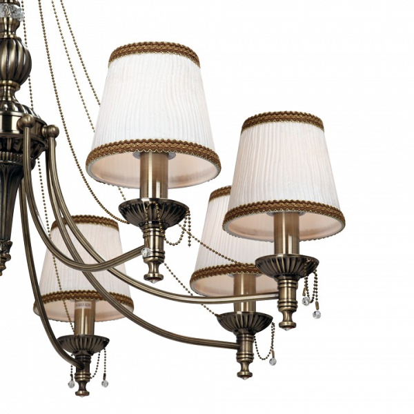 Изделие V1841/8 от российского бренда Vitaluce и отлично подойдет для установки на потолок в гостиной, оформленной в классическом стиле. Подвесная люстра Vitaluce V1841/8 с плафонами-конусами осветит помещение площадью 17.8 кв. м. Для устройства рекомендуется использовать лампы накаливания с цоколем E14 и мощностью 40 W. Основными материалами для производства используется металл и ткань и может использоваться для натяжного потолка. Преимущественно представляется в цвете Бронзовый и Белый.