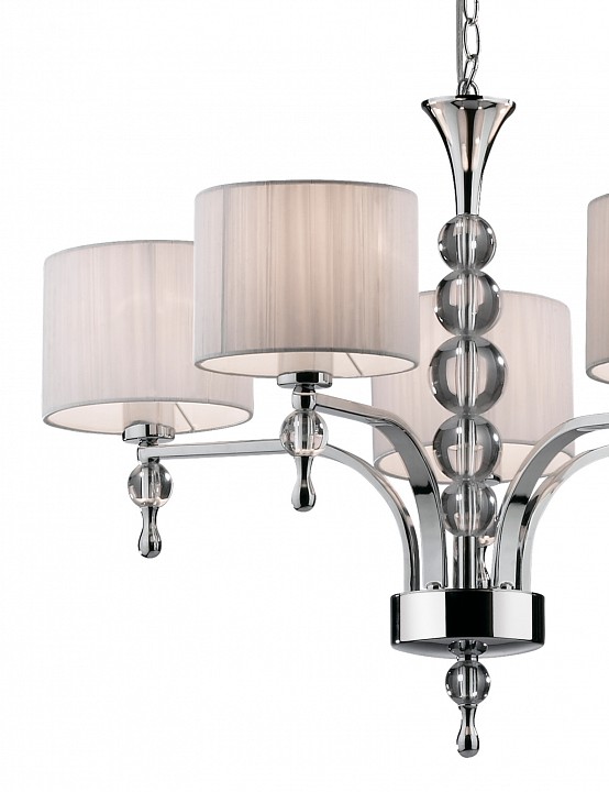 Люстра 2005/5 серии Viga выполнена в стиле модерн. Покрытие металлического каркаса цвета хром, центральную часть и концы рожков украшают сферические стекла, абажуры выполнены из ткани белого цвета. Цоколь E27. Мощность 1*60W. Нет ламп в комплекте.
