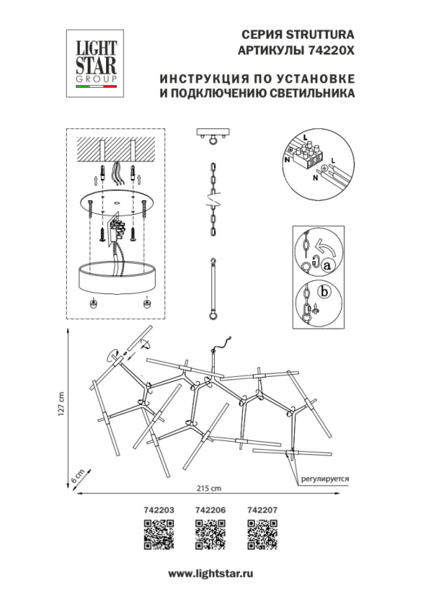 Изделие 742206 от итальянского бренда Lightstar относится к коллекции Struttura и отлично подойдет для установки на потолок больших залов, оформленных в стиле хай-тек. Подвесная люстра Lightstar Struttura 742206 с цилиндрическими плафонами осветит помещение площадью 44.4 кв. м. Для устройства рекомендуется использовать галогеновые лампы с цоколем G9 и мощностью 6 W. Основными материалами для производства используется стекло и металл и может использоваться для натяжного потолка. Преимущественно представляется в цвете Белый.