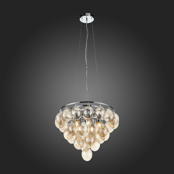 Изделие SL432.203.05 от итальянского бренда ST Luce относится к коллекции Sospiro и отлично подойдет для установки на потолок спальни, оформленной в дизайнерском стиле. Подвесная люстра ST Luce Sospiro SL432.203.05 без плафонов осветит помещение площадью 16.7 кв. м. Для устройства рекомендуется использовать лампы накаливания с цоколем E27 и мощностью 60 W. Основными материалами для производства используется стекло и металл и может использоваться для натяжного потолка. Преимущественно представляется в цвете Янтарный и Серебристо-стальной.