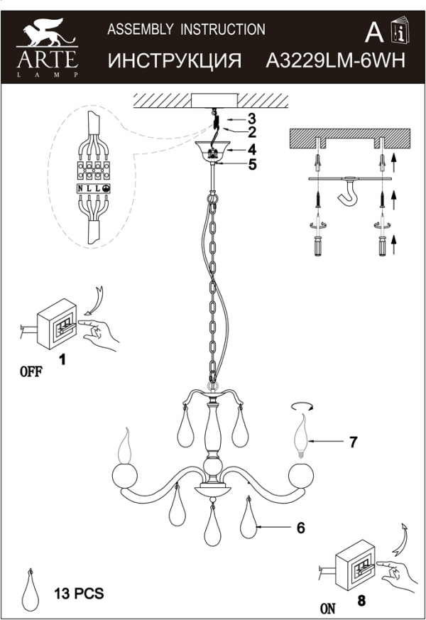 Изделие A3229LM-6WH от итальянского бренда Arte Lamp относится к коллекции Sigma и отлично подойдет для установки на потолок в гостиной, оформленной в стиле арт-деко. Подвесная люстра Arte Lamp Sigma A3229LM-6WH без плафонов осветит помещение площадью 13.3 кв. м. Для устройства рекомендуется использовать лампы накаливания с цоколем E14 и мощностью 40 W. Основным материалом для производства используется металл и может использоваться для натяжного потолка. Преимущественно представляется в цвете Белый.