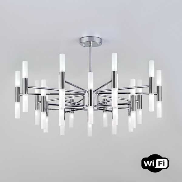 Изделие 346 Smart от российского бренда Bogates относится к коллекции Bastone и отлично подойдет для установки на потолок в гостиной, оформленной в стиле минимализм. Подвесная люстра Bogates Bastone 346 Smart с цилиндрическими плафонами осветит помещение площадью 60 кв.м. Для устройства рекомендуется использовать светодиодные лампы с цоколем G4 и мощностью 3 W. Основными материалами для производства используется пластик, металл и акрил и может использоваться для натяжного потолка. Преимущественно представляется в цвете Белый и Серебристо-стальной.