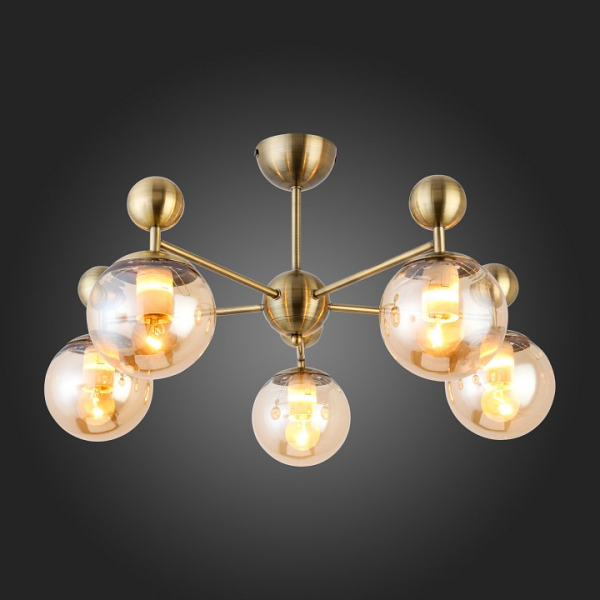 Изделие SLE106302-05 от итальянского бренда Evoluce относится к коллекции Pechio и отлично подойдет для установки на потолок в гостиной, оформленной в стиле модерн. Подвесная люстра Evoluce Pechio SLE106302-05 с плафонами в виде шаров осветит помещение площадью 16.7 кв.м. Для устройства рекомендуется использовать лампы накаливания с цоколем E27 и мощностью 60 W. Основными материалами для производства используется стекло и металл. Преимущественно представляется в цвете Бронзовый и Янтарный.