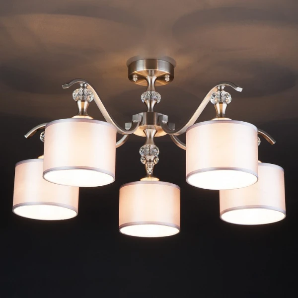 Изделие 60070/5 сатин-никель от российского бренда Eurosvet относится к коллекции Ofelia и отлично подойдет для установки на низкий потолок спальни, оформленной в стиле модерн. Потолочная люстра Eurosvet Ofelia 60070/5 сатин-никель с цилиндрическими плафонами осветит помещение площадью 13.3 кв.м. Для устройства рекомендуется использовать лампы накаливания с цоколем E14 и мощностью 40 W. Основными материалами для производства используется текстиль, металл и ткань и может использоваться для натяжного потолка. Преимущественно представляется в цвете Серебряный и Никелевый.