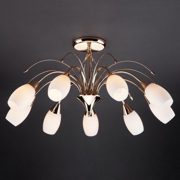 Изделие 22080/9 золото от российского бренда Eurosvet относится к коллекции 22080 Золото и отлично подойдет для установки на потолок в гостиной, оформленной в стиле флористика. Потолочная люстра Eurosvet 22080/9 золото с овальными плафонами осветит помещение площадью 24 кв.м. Для устройства рекомендуется использовать лампы накаливания с цоколем E14 и мощностью 40 W. Основными материалами для производства используется стекло и металл и может использоваться для натяжного потолка. Преимущественно представляется в цвете Белый и Золотой.