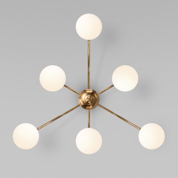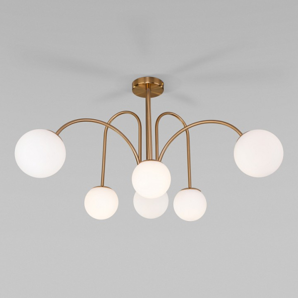 Изделие 30177/6 латунь от российского бренда Eurosvet относится к коллекции Alix и отлично подойдет для установки на потолок в гостиной, оформленной в современном стиле. Потолочная люстра Eurosvet Alix 30177/6 латунь с плафонами в виде шаров осветит помещение площадью 16 кв.м. Для устройства рекомендуется использовать лампы накаливания с цоколем E27 и мощностью 40 W. Основными материалами для производства используется стекло и металл и может использоваться для натяжного потолка. Преимущественно представляется в цвете Белый и Латунный.