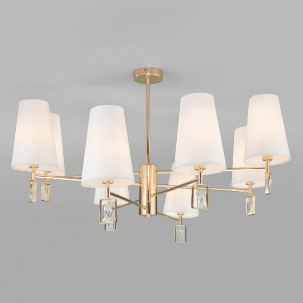 Изделие 60137/8 золото от российского бренда Eurosvet относится к коллекции Milazzo и отлично подойдет для установки на потолок в гостиной, оформленной в стиле модерн. Подвесная люстра Eurosvet Milazzo 60137/8 золото с плафонами-конусами осветит помещение площадью 14 кв.м. Для устройства рекомендуется использовать лампы накаливания с цоколем E14 и мощностью 40 W. Основными материалами для производства используется текстиль, металл и ткань и может использоваться для натяжного потолка. Преимущественно представляется в цвете Белый и Золотой.