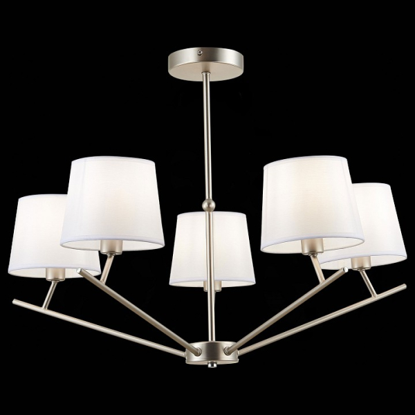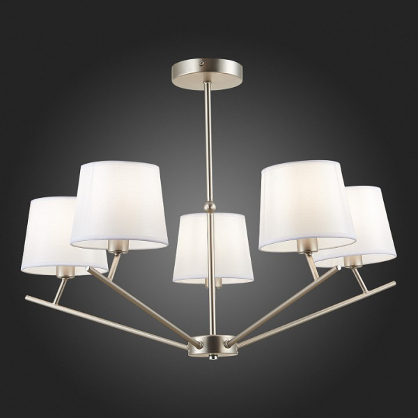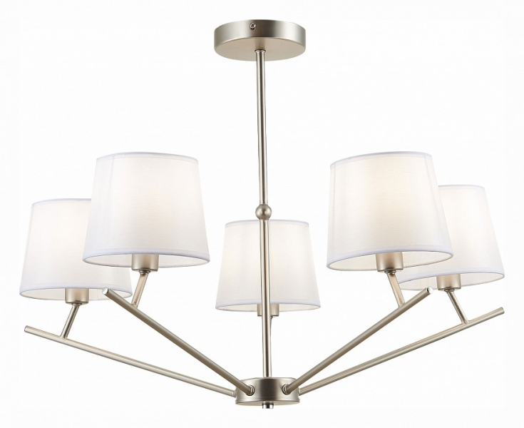 Изделие SLE300102-05 от итальянского бренда Evoluce относится к коллекции Denice и отлично подойдет для установки на потолок спальни, оформленной в современном стиле. Потолочная люстра Evoluce Denice SLE300102-05 с плафонами-конусами осветит помещение площадью 10 кв.м. Для устройства рекомендуется использовать лампы накаливания с цоколем E14 и мощностью 40 W. Основными материалами для производства используется текстиль, металл и ткань и может использоваться для натяжного потолка. Преимущественно представляется в цвете Никелевый и Белый.