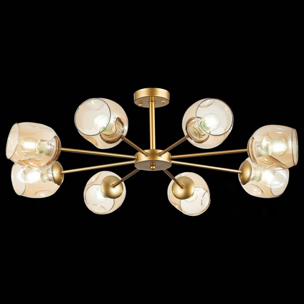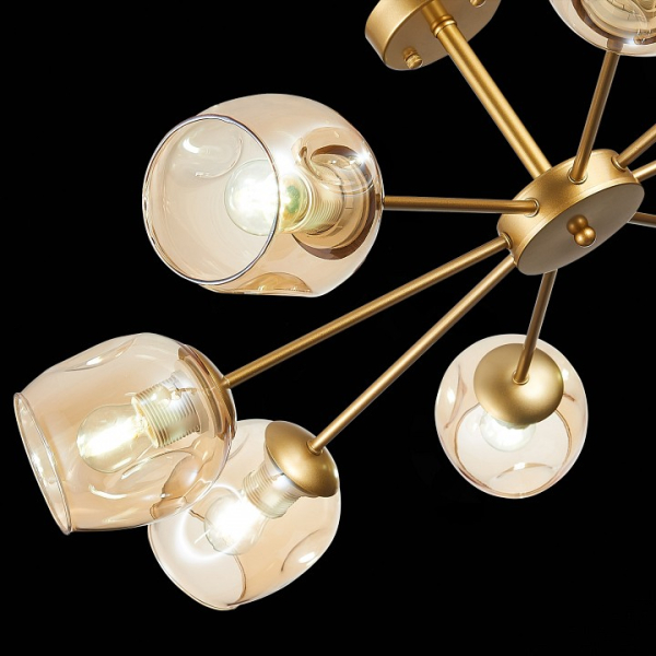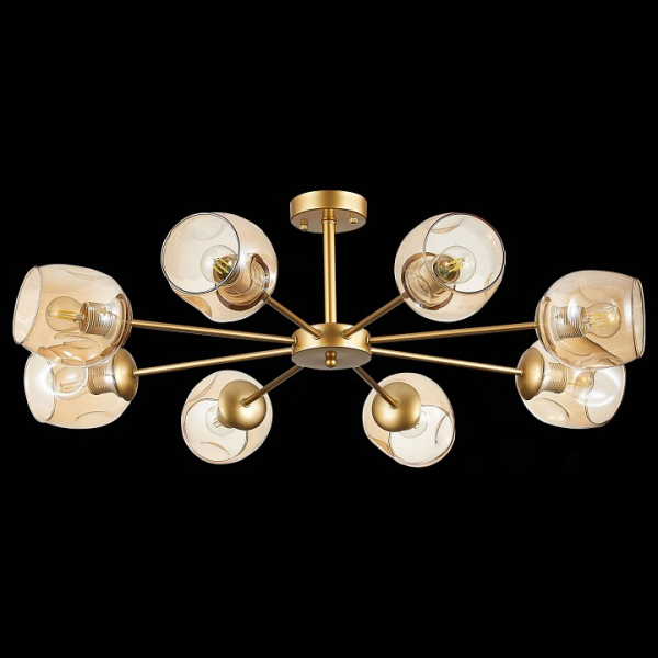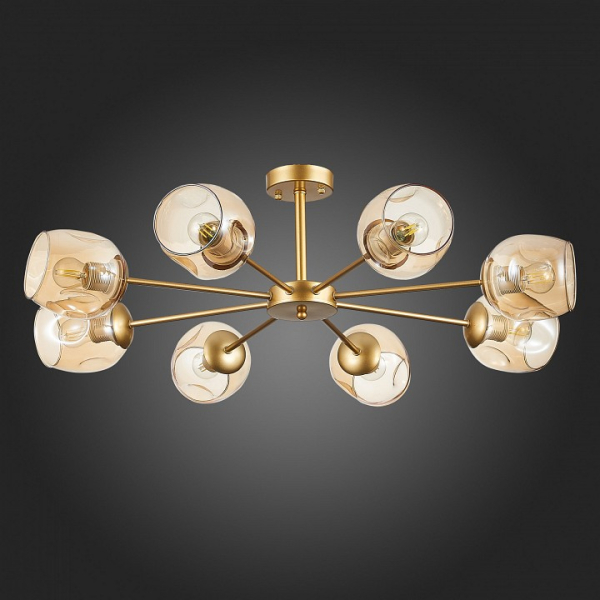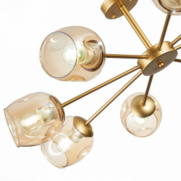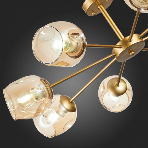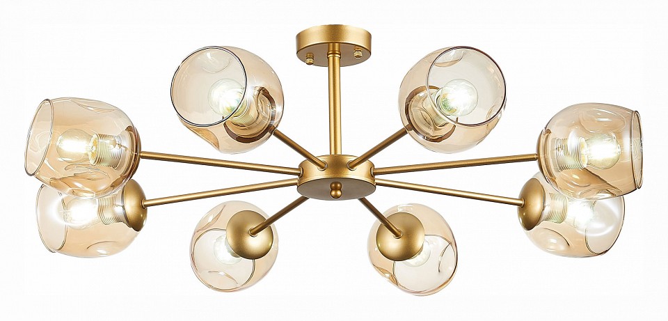 Изделие SLE155412-08 от итальянского бренда Evoluce относится к коллекции Pallo и отлично подойдет для установки на низкий потолок в гостиной, оформленной в стиле модерн. Потолочная люстра Evoluce Pallo SLE155412-08 с овальными плафонами осветит помещение площадью 26.7 кв.м. Для устройства рекомендуется использовать лампы накаливания с цоколем E27 и мощностью 60 W. Основными материалами для производства используется стекло и металл и может использоваться для натяжного потолка. Преимущественно представляется в цвете Янтарный и Золотой.