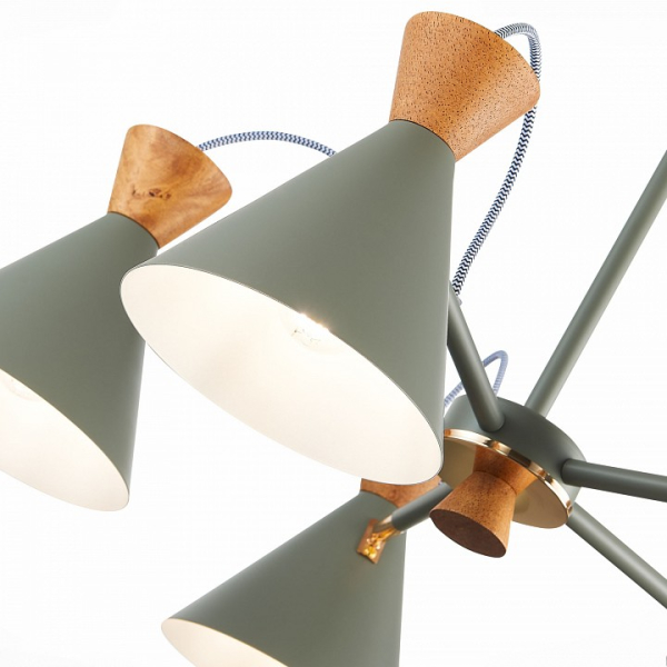 Изделие SLE125112-05 от итальянского бренда Evoluce относится к коллекции Modica и отлично подойдет для установки на потолок спальни, оформленной в скандинавском стиле. Потолочная люстра Evoluce Modica SLE125112-05 с плафонами-конусами осветит помещение площадью 10 кв.м. Для устройства рекомендуется использовать лампы накаливания с цоколем E14 и мощностью 40 W. Основными материалами для производства используется дерево и металл и может использоваться для натяжного потолка. Преимущественно представляется в цвете Серый и Древесный.
