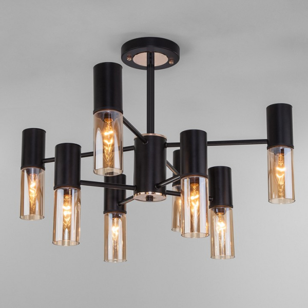 Изделие 70125/8 черный от российского бренда Eurosvet относится к коллекции Tesoro и отлично подойдет для установки на потолок в гостиной, оформленной в стиле модерн. Подвесная люстра Eurosvet Tesoro 70125/8 черный с цилиндрическими плафонами осветит помещение площадью 17.8 кв.м. Для устройства рекомендуется использовать лампы накаливания с цоколем E14 и мощностью 40 W. Основными материалами для производства используется стекло и металл и может использоваться для натяжного потолка. Преимущественно представляется в цвете Янтарный и Черный.