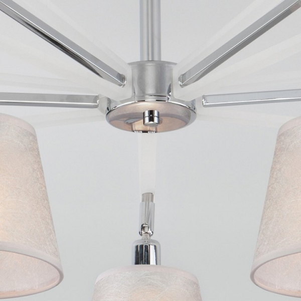 Изделие 60082/5 хром от российского бренда Eurosvet относится к коллекции Alicante и отлично подойдет для установки на потолок спальни, оформленной в стиле неоклассики. Потолочная люстра Eurosvet 60082/5 хром с плафонами-конусами осветит помещение площадью 13.3 кв.м. Для устройства рекомендуется использовать лампы накаливания с цоколем E14 и мощностью 40 W. Основными материалами для производства используется текстиль, металл и ткань и может использоваться для натяжного потолка. Преимущественно представляется в цвете Серый и Серебристо-стальной.