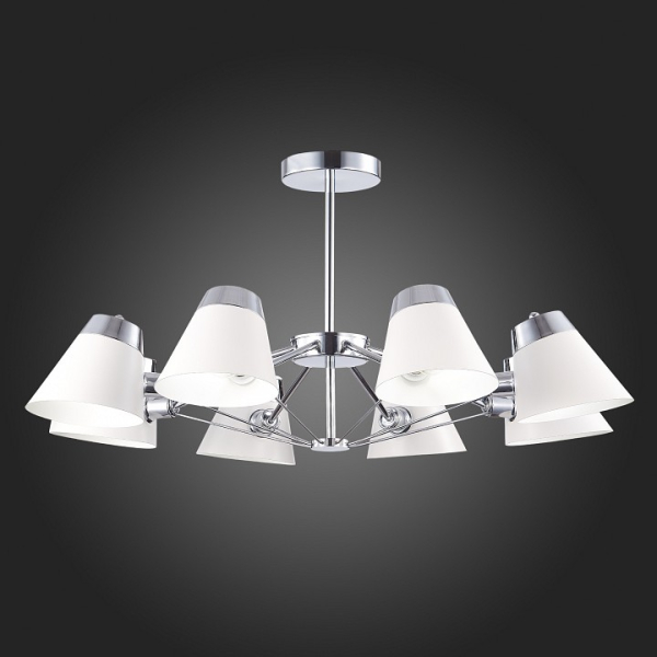 Изделие SLE155802-08 от итальянского бренда Evoluce относится к коллекции Vario и отлично подойдет для установки на потолок в гостиной, оформленной в стиле хай-тек. Потолочная люстра Evoluce Vario SLE155802-08 с плафонами-конусами осветит помещение площадью 17.8 кв.м. Для устройства рекомендуется использовать лампы накаливания с цоколем E14 и мощностью 40 W. Основным материалом для производства используется металл и может использоваться для натяжного потолка. Преимущественно представляется в цвете Белый и Серебристо-стальной.
