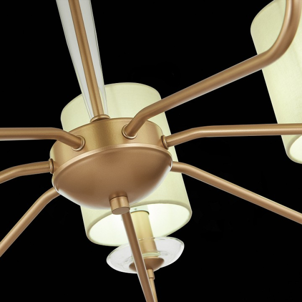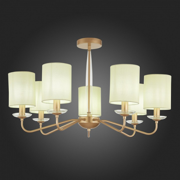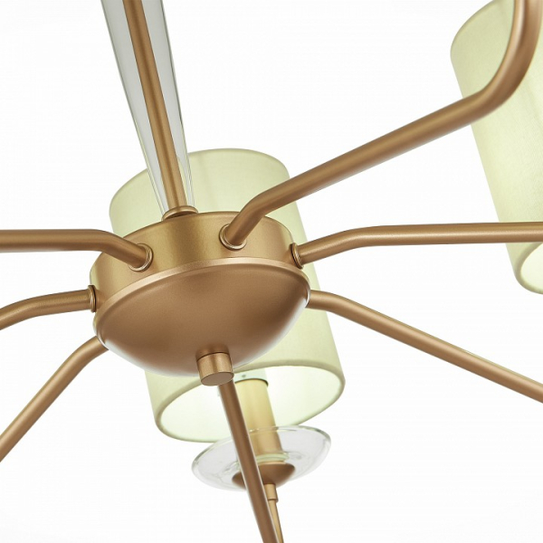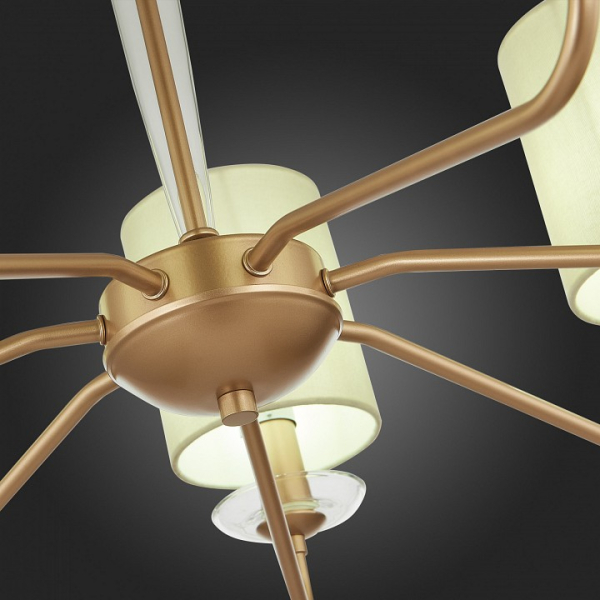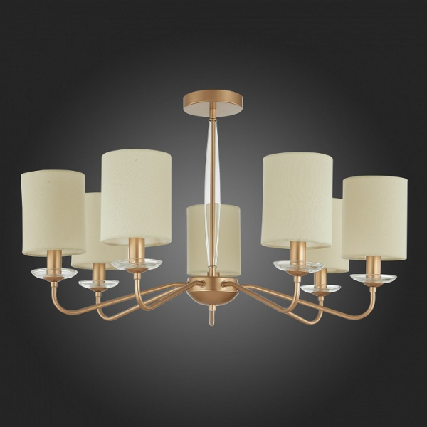 Изделие SLE108002-07 от итальянского бренда Evoluce относится к коллекции Rita и отлично подойдет для установки на потолок спальни, оформленной в стиле модерн. Потолочная люстра Evoluce Rita SLE108002-07 с цилиндрическими плафонами осветит помещение площадью 15.6 кв.м. Для устройства рекомендуется использовать лампы накаливания с цоколем E14 и мощностью 40 W. Основными материалами для производства используется текстиль, металл и ткань и может использоваться для натяжного потолка. Преимущественно представляется в цвете Бежевый и Золотой.