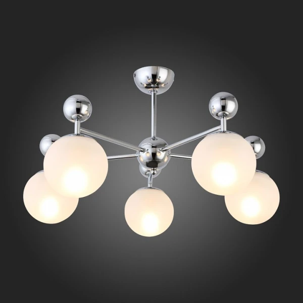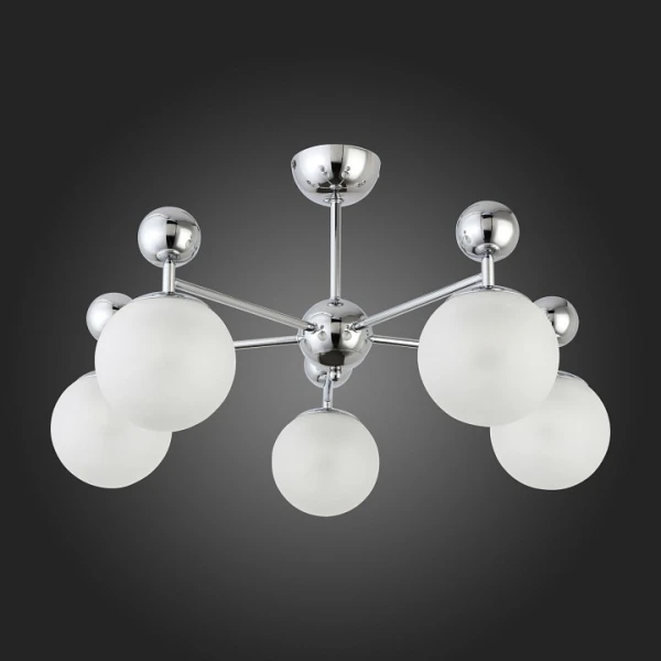Изделие SLE106102-05 от итальянского бренда Evoluce относится к коллекции Pechio и отлично подойдет для установки на низкий потолок в гостиной, оформленной в стиле модерн. Подвесная люстра Evoluce Pechio SLE106102-05 с плафонами в виде шаров осветит помещение площадью 16.7 кв.м. Для устройства рекомендуется использовать лампы накаливания с цоколем E27 и мощностью 60 W. Основными материалами для производства используется стекло и металл и может использоваться для натяжного потолка. Преимущественно представляется в цвете Хромовый, Серебристо-стальной и Белый.