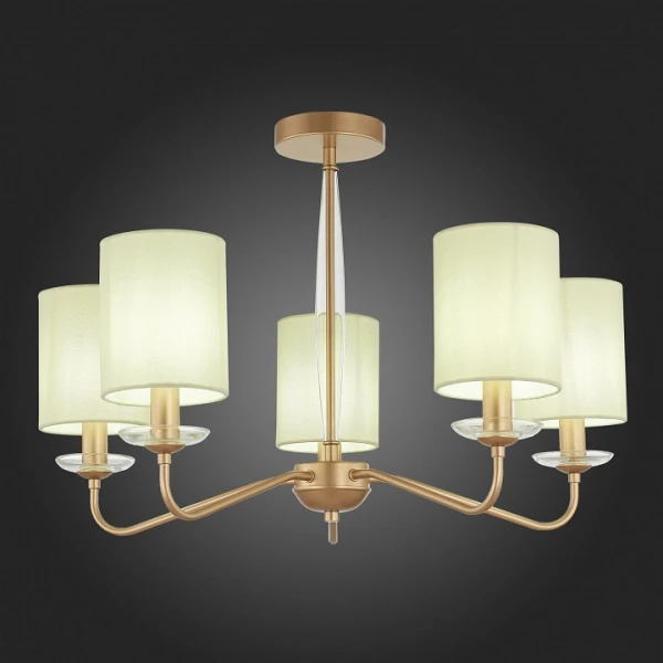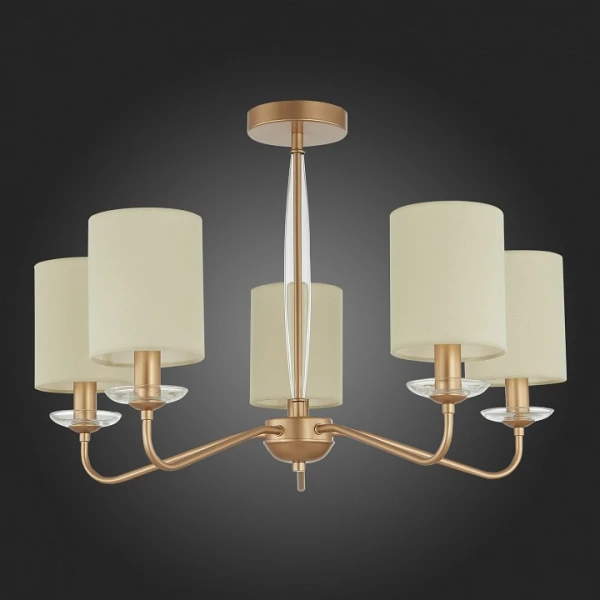 Изделие SLE108002-05 от итальянского бренда Evoluce относится к коллекции Rita и отлично подойдет для установки на потолок спальни, оформленной в стиле модерн. Потолочная люстра Evoluce Rita SLE108002-05 с цилиндрическими плафонами осветит помещение площадью 11.1 кв.м. Для устройства рекомендуется использовать лампы накаливания с цоколем E14 и мощностью 40 W. Основными материалами для производства используется текстиль, металл и ткань и может использоваться для натяжного потолка. Преимущественно представляется в цвете Бежевый и Золотой.