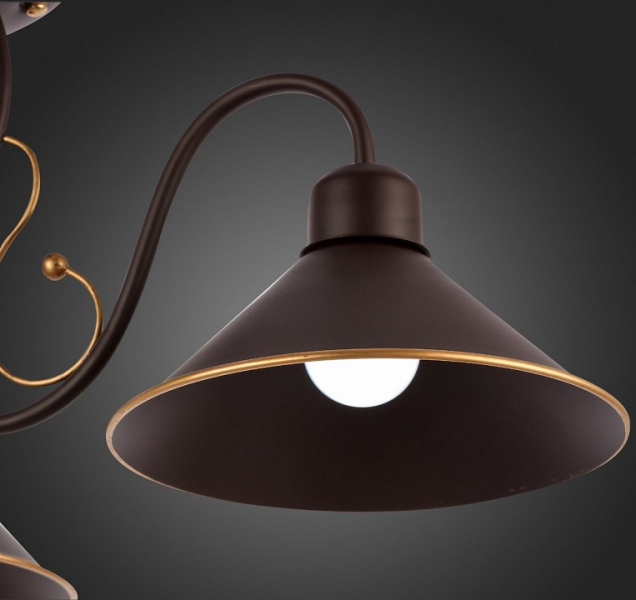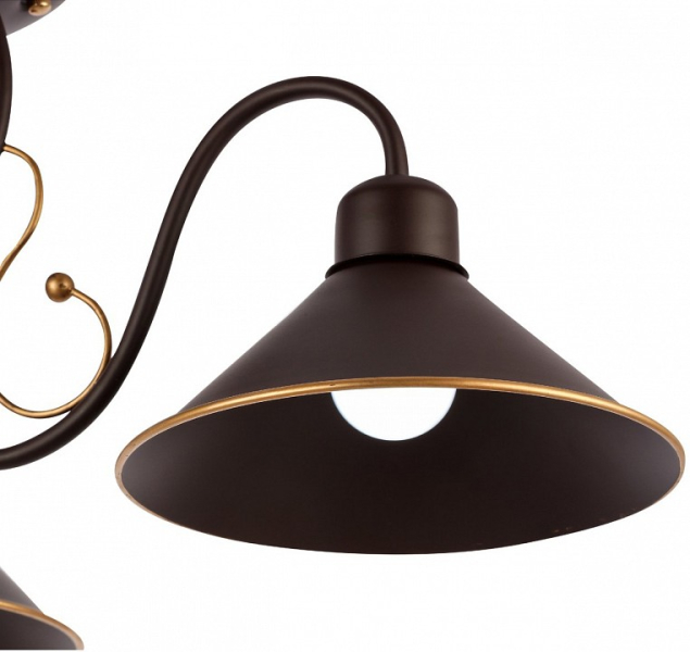 Изделие SLE120402-03 от итальянского бренда Evoluce относится к коллекции Ciolla и отлично подойдет для установки на потолок в гостиной, оформленной в стиле лофт. Потолочная люстра Evoluce Ciolla SLE120402-03 с плафонами-конусами осветит помещение площадью 6.7 кв.м. Для устройства рекомендуется использовать лампы накаливания с цоколем E27 и мощностью 40 W. Основным материалом для производства используется металл. Преимущественно представляется в цвете Коричневый.
