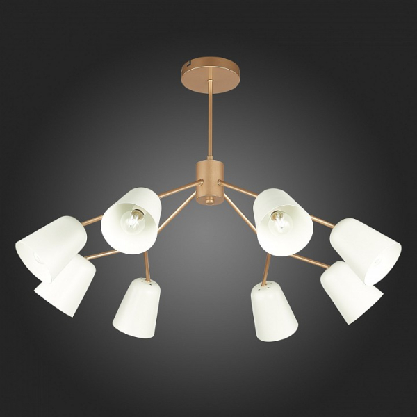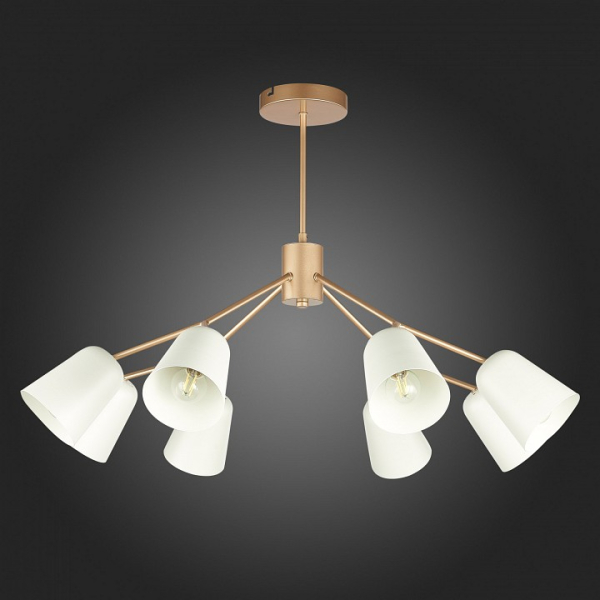 Изделие SLE155902-08 от итальянского бренда Evoluce относится к коллекции Mario и отлично подойдет для установки на потолок спальни, оформленной в скандинавском стиле. Подвесная люстра Evoluce Mario SLE155902-08 с плафонами-конусами осветит помещение площадью 17.8 кв.м. Для устройства рекомендуется использовать лампы накаливания с цоколем E14 и мощностью 40 W. Основным материалом для производства используется металл и может использоваться для натяжного потолка. Преимущественно представляется в цвете Белый и Золотой.
