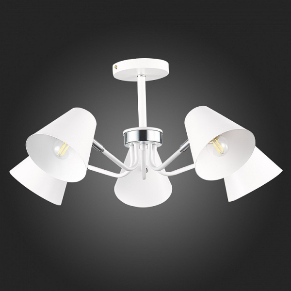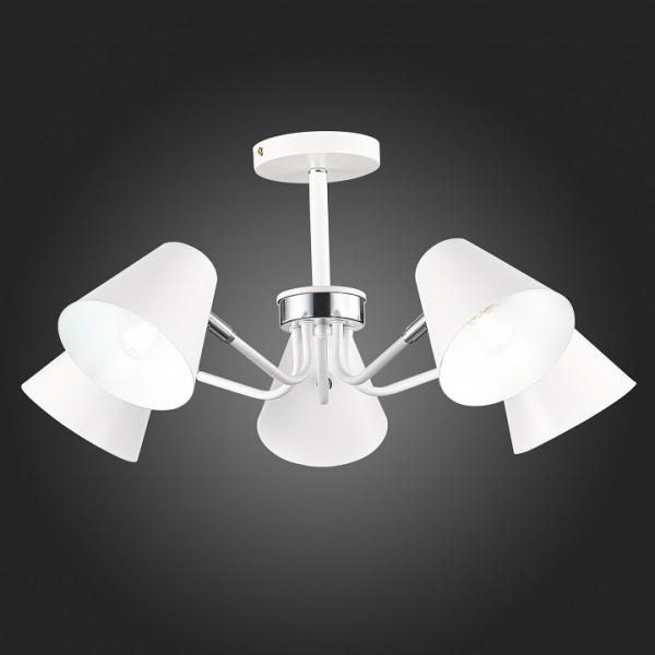 Изделие SLE106702-05 от итальянского бренда Evoluce относится к коллекции Lere и отлично подойдет для установки на низкий потолок кухни, оформленной в стиле модерн. Потолочная люстра Evoluce Lere SLE106702-05 с плафонами-конусами осветит помещение площадью 16.7 кв.м. Для устройства рекомендуется использовать лампы накаливания с цоколем E27 и мощностью 60 W. Основным материалом для производства используется металл и может использоваться для натяжного потолка. Преимущественно представляется в цвете Белый и Серебристо-стальной.