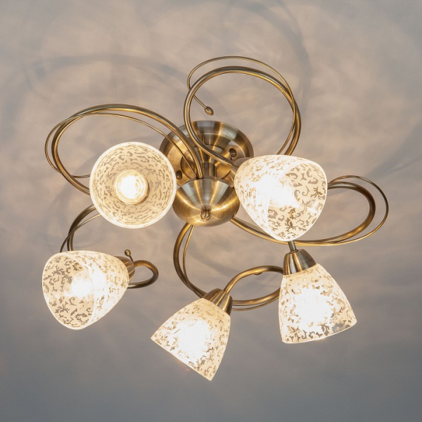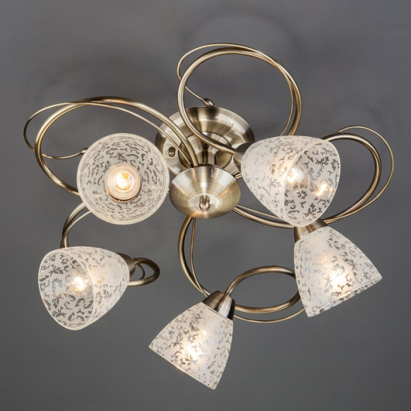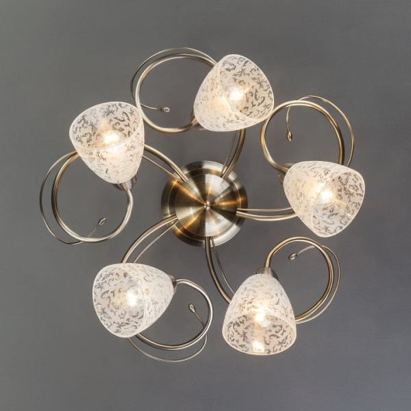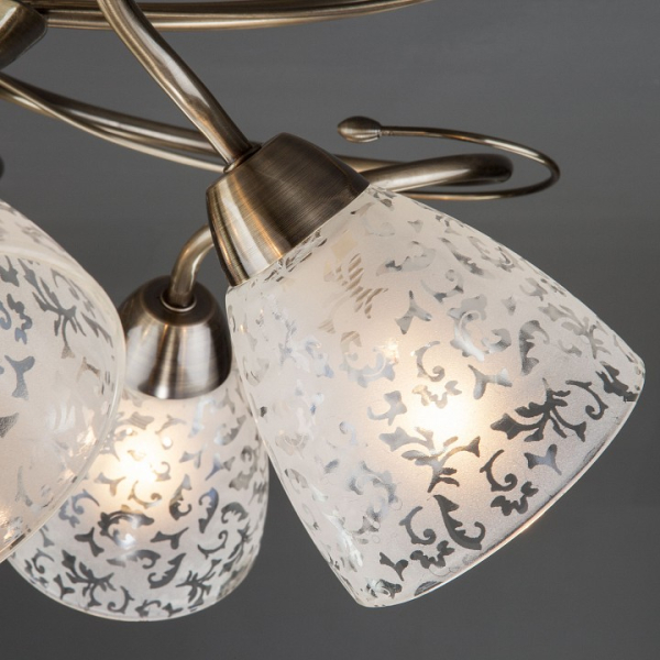 Необыкновенная модель 30130/5 античная бронза от российской компании Eurosvet относится к коллекции Natalie и отлично подойдет для установки на низкий потолок спальни, оформленной в современном стиле. Потолочный светильник Eurosvet 30130/5 античная бронза с конусными плафонами осветит помещение площадью 20 кв. м. Производитель Eurosvet рекомендует использовать для устройства лампы накаливания с цоколем E14 и мощностью 60 W. Прибор произведен с использованием материалов: стекло и металл и может использоваться для натяжного потолка. Основным цветом товара является Белый и Бронзовый. Потолочный светильник 30130/5 античная бронза .