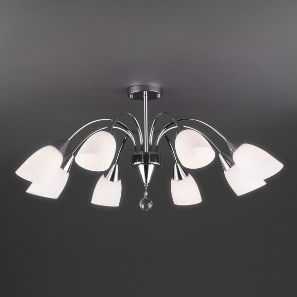Изделие 30149/8 хром от российского бренда Eurosvet относится к коллекции Ellene и отлично подойдет для установки на потолок в гостиной, оформленной в современном стиле. Потолочная люстра Eurosvet 30149/8 хром с плафонами-конусами осветит помещение площадью 21.3 кв.м. Для устройства рекомендуется использовать лампы накаливания с цоколем E27 и мощностью 40 W. Основными материалами для производства используется стекло и металл и может использоваться для натяжного потолка. Преимущественно представляется в цвете Белый и Серебристо-стальной.
