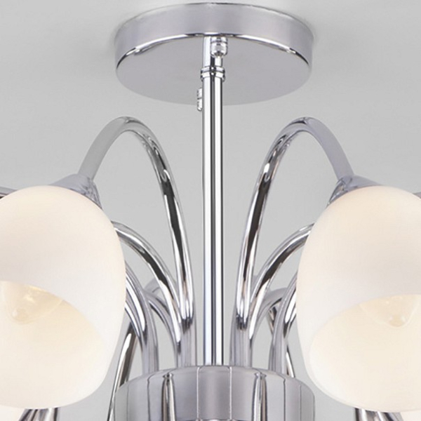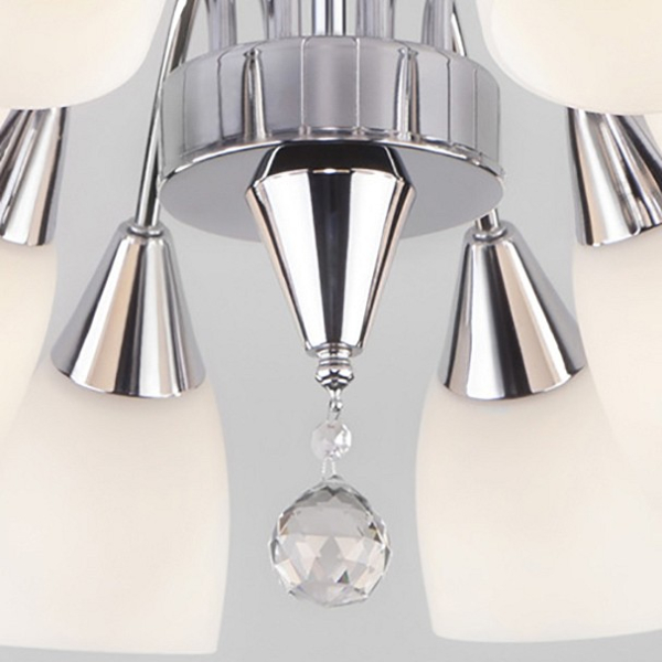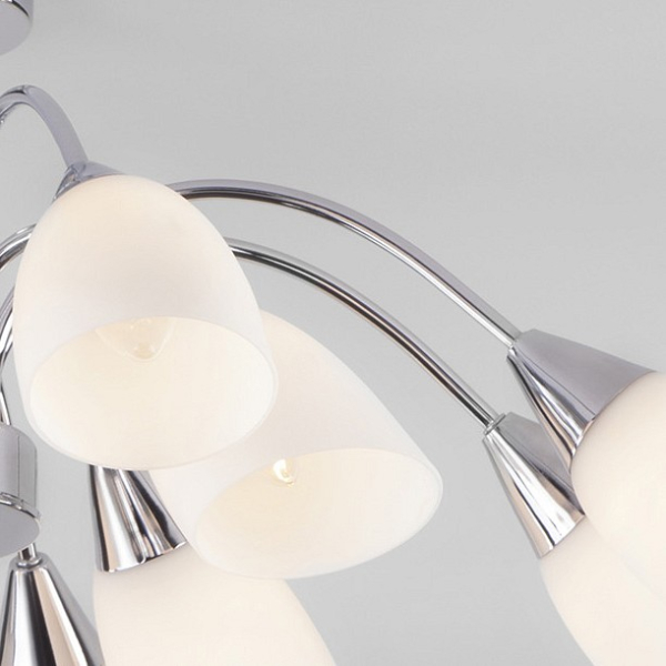 Изделие 30149 хром от российского бренда Eurosvet относится к коллекции Ellene и отлично подойдет для установки на потолок в гостиной, оформленной в современном стиле. Потолочная люстра Eurosvet 30149 хром с плафонами-конусами осветит помещение площадью 32 кв.м. Для устройства рекомендуется использовать лампы накаливания с цоколем E27 и мощностью 40 W. Основными материалами для производства используется стекло и металл и может использоваться для натяжного потолка. Преимущественно представляется в цвете Белый и Серебристо-стальной.