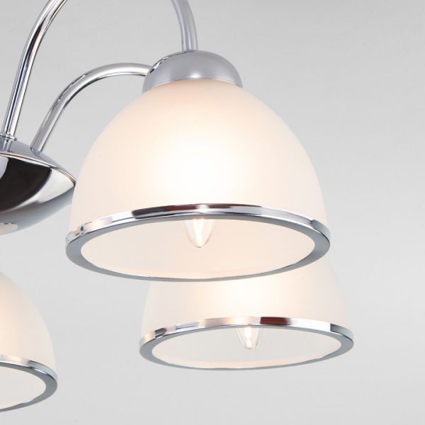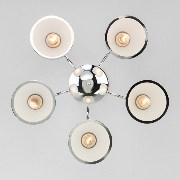 Изделие 30174/5 хром от российского бренда Eurosvet относится к коллекции Shanon и отлично подойдет для установки на низкий потолок кухни, оформленной в стиле модерн. Потолочная люстра Eurosvet Shanon 30174/5 хром с полукруглыми плафонами осветит помещение площадью 11.1 кв.м. Для устройства рекомендуется использовать лампы накаливания с цоколем E27 и мощностью 40 W. Основными материалами для производства используется стекло и металл и может использоваться для натяжного потолка. Преимущественно представляется в цвете Белый и Серебристо-стальной.