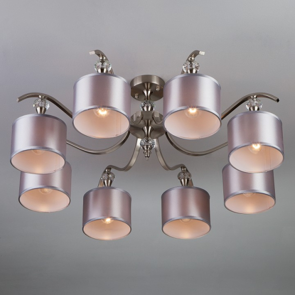 Изделие 60070/8 сатин-никель от российского бренда Eurosvet относится к коллекции Ofelia и отлично подойдет для установки на низкий потолок в гостиной, оформленной в стиле модерн. Потолочная люстра Eurosvet 60070/8 сатин-никель с цилиндрическими плафонами осветит помещение площадью 21.3 кв.м. Для устройства рекомендуется использовать лампы накаливания с цоколем E14 и мощностью 40 W. Основными материалами для производства используется текстиль, металл и ткань и может использоваться для натяжного потолка. Преимущественно представляется в цвете Серебряный и Никелевый.