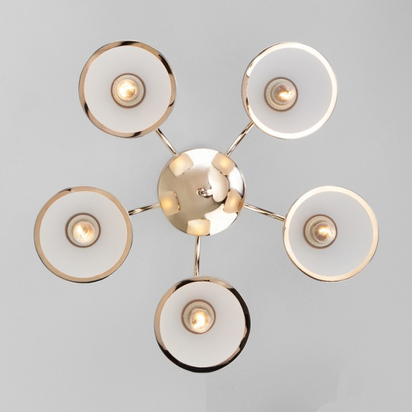 Изделие 30174/5 золото от российского бренда Eurosvet относится к коллекции Shanon и отлично подойдет для установки на низкий потолок кухни, оформленной в стиле модерн. Потолочная люстра Eurosvet Shanon 30174/5 золото с полукруглыми плафонами осветит помещение площадью 11.1 кв.м. Для устройства рекомендуется использовать лампы накаливания с цоколем E27 и мощностью 40 W. Основными материалами для производства используется стекло и металл и может использоваться для натяжного потолка. Преимущественно представляется в цвете Белый и Золотой.