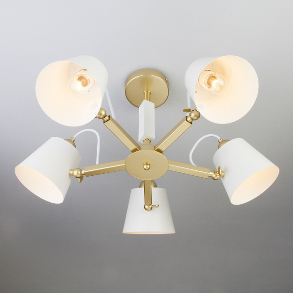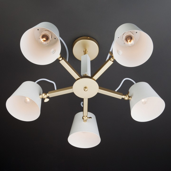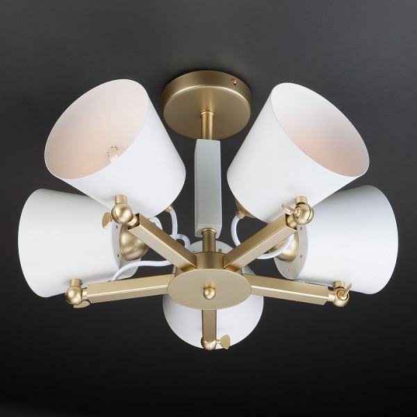 Изделие 70083/5 золото от российского бренда Eurosvet относится к коллекции Frozen и отлично подойдет для установки на низкий потолок спальни, оформленной в скандинавском стиле. Светильник Eurosvet с поворотными рожками 70083/5 золото с плафонами-конусами осветит помещение площадью 20 кв.м. Для устройства рекомендуется использовать лампы накаливания с цоколем E27 и мощностью 60 W. Основным материалом для производства используется металл и может использоваться для натяжного потолка. Преимущественно представляется в цвете Белый и Золотой.