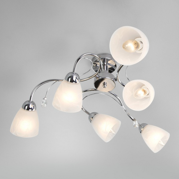 Изделие 30169/6 хром от российского бренда Eurosvet относится к коллекции Priya и отлично подойдет для установки на низкий потолок спальни, оформленной в стиле модерн. Потолочная люстра Eurosvet Priya 30169/6 хром с плафонами-конусами осветит помещение площадью 13.3 кв.м. Для устройства рекомендуется использовать лампы накаливания с цоколем E14 и мощностью 40 W. Основными материалами для производства используется стекло и металл и может использоваться для натяжного потолка. Преимущественно представляется в цвете Белый и Серебристо-стальной.