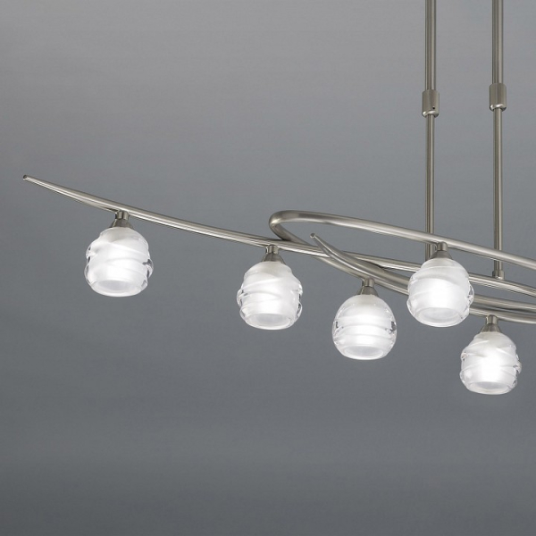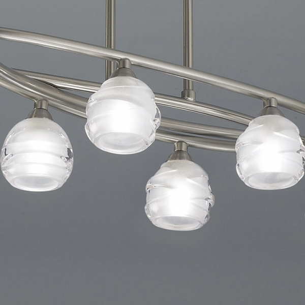 Изделие 1810 от испанского бренда Mantra относится к коллекции Loop и отлично подойдет для установки на потолок в гостиной, оформленной в дизайнерском стиле. Для устройства рекомендуется использовать светодиодные лампы с цоколем G9 и мощностью 5 W. Основными материалами для производства используется стекло и металл и может использоваться для натяжного потолка. В комплект поставки входят также лампы. Преимущественно представляется в цвете Белый и Серебристо-стальной.
