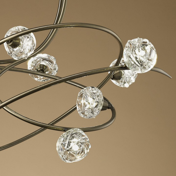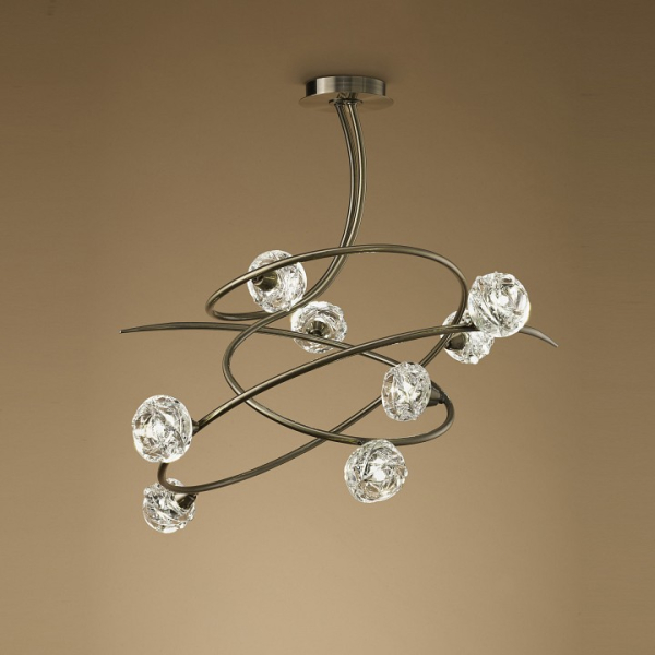 MAREMAGNUM - это сочетании элегантных извилистых линий и стеклянных шаров, похожих на ледяные скульптуры с загадочными узорами. Коллекция, которая предлагает изящество и роскошь в простоте изогнутых линии. Они напоминают элегантные штрихи художественной кисти. Запутанная и интригующая структура кажется случайной, но каждая деталь преднамеренна. Все предметы коллекции доступны в полированном хроме и бронзе. Главным элементом светильника становятся стеклянные шары, которые эффектно рассеивают лучи света. MAREMAGNUM придаст динамичности классическому интерьеру. Из-за своей эффективности и удачной линейной композиции, светильники коллекции будут идеально смотреться на кухне или в обеденной зоне.