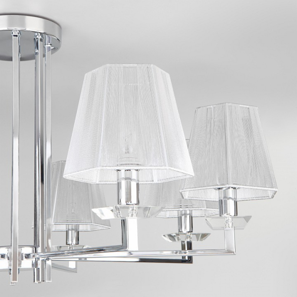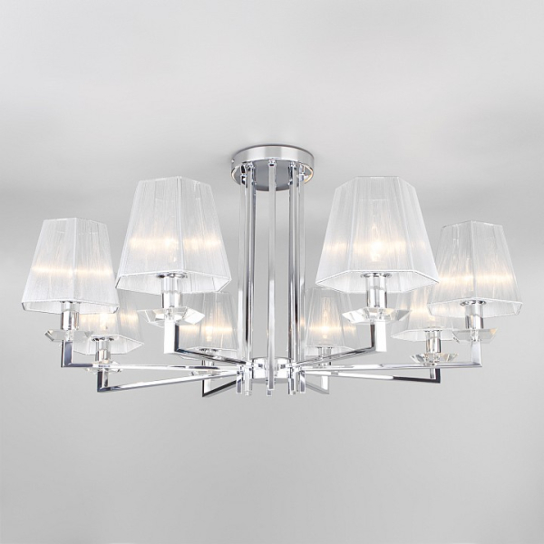 Изделие 60114/8 хром от российского бренда Eurosvet относится к коллекции Alegria и отлично подойдет для установки на потолок спальни, оформленной в стиле модерн. Потолочная люстра Eurosvet Alegria 60114/8 хром с пирамидальными плафонами осветит помещение площадью 17.8 кв. м. Для устройства рекомендуется использовать лампы накаливания с цоколем E14 и мощностью 40 W. Основными материалами для производства используется текстиль, металл и ткань и может использоваться для натяжного потолка. Преимущественно представляется в цвете Серебряный и Серебристо-стальной.
