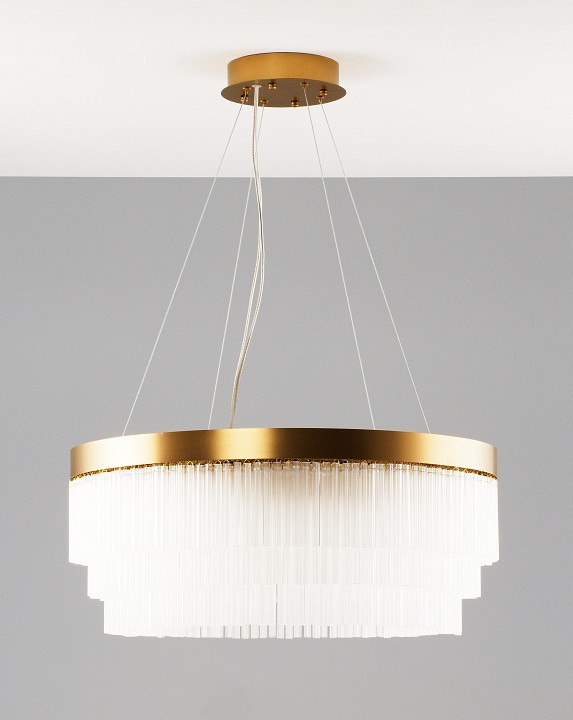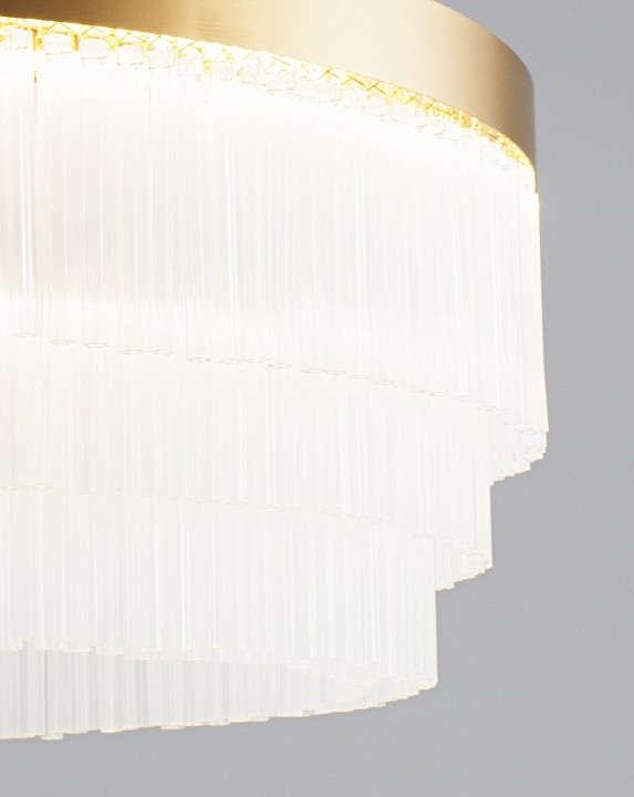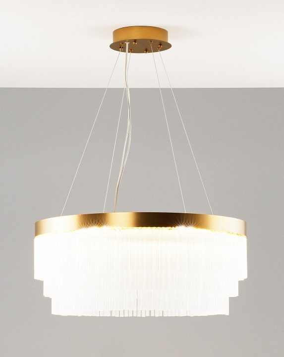Изделие V6080-PL от итальянского бренда Moderli относится к коллекции Briol и отлично подойдет для установки на потолок в гостиной, оформленной в стиле модерн. Осветительный элемент встроен в конструкцию и не требует приобретения дополнительных лампочек. Основными материалами для производства используется стекло и сталь и может использоваться для натяжного потолка. Преимущественно представляется в цвете Латунный и Прозрачный.