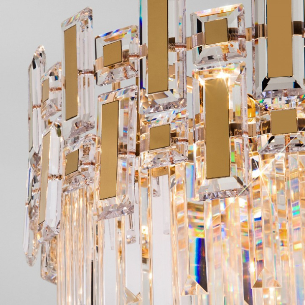 Изделие 330/6 Strotskis от российского бренда Bogates относится к коллекции Lago и отлично подойдет для установки на потолок спальни, оформленной в стиле арт-деко. Подвесная люстра Bogates Lago 330/6 Strotskis с цилиндрическими плафонами осветит помещение площадью 20 кв.м. Для устройства рекомендуется использовать лампы накаливания с цоколем E14 и мощностью 60 W. Основными материалами для производства используется хрусталь и металл и может использоваться для натяжного потолка. Преимущественно представляется в цвете Золотой и Прозрачный.