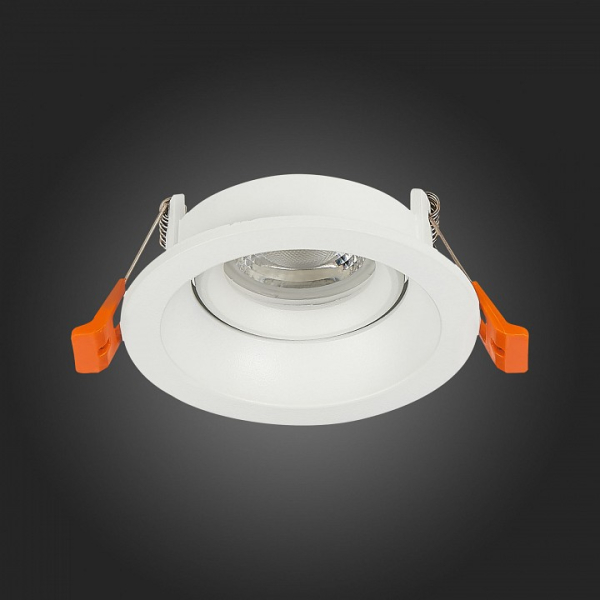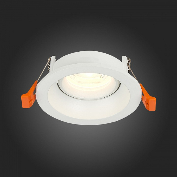 Встраиваемый светильник ST208.508.01 из коллекции Misura итальянского бренда ST-Luce для установки в гостиную, кабинет, кладовую, коридор, прихожую, спальню или уборную. Основание светильника белое матовое из металла. Модель оснащена лампой с цоколем GU10, максимальной мощностью 50W. Крепление к потолку на прижимных скобах. Габариты светильника: глубина – 40 мм, диаметр – 94 мм. Размер врезного отверстия – 80 мм.