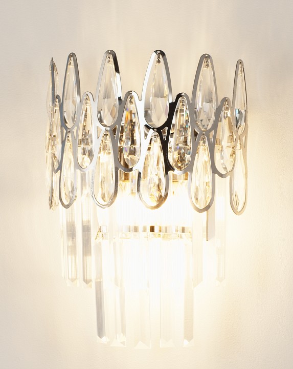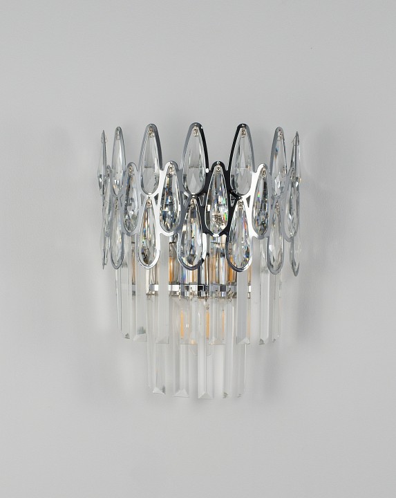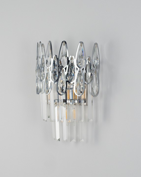 Изделие V8041-2W от итальянского бренда Moderli относится к коллекции May и отлично подойдет для настенной установки в гостиной, оформленной в стиле модерн. Настенный светильник Moderli May V8041-2W с плафонами-конусами осветит помещение площадью 5.3 кв.м. Для устройства рекомендуется использовать лампы накаливания с цоколем E14 и мощностью 40 W. Основными материалами для производства используется хрусталь и металл. Преимущественно представляется в цвете Хромовый, Серебристо-стальной и Прозрачный.