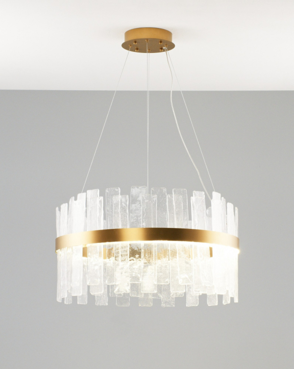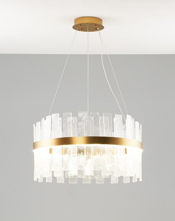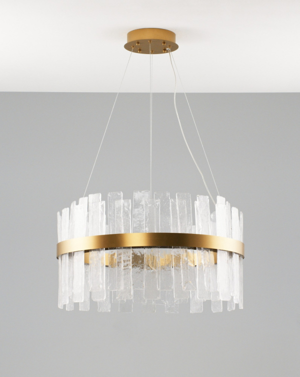 Изделие V9000-PL от итальянского бренда Moderli относится к коллекции Lima и отлично подойдет для установки на потолок в гостиной, оформленной в стиле модерн. Осветительный элемент встроен в конструкцию и не требует приобретения дополнительных лампочек. Основными материалами для производства используется стекло и сталь и может использоваться для натяжного потолка. Преимущественно представляется в цвете Латунный и Прозрачный.