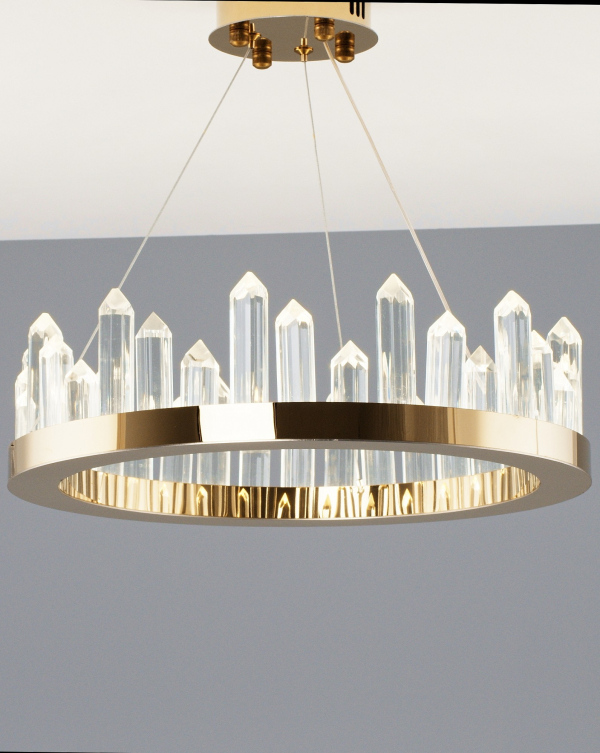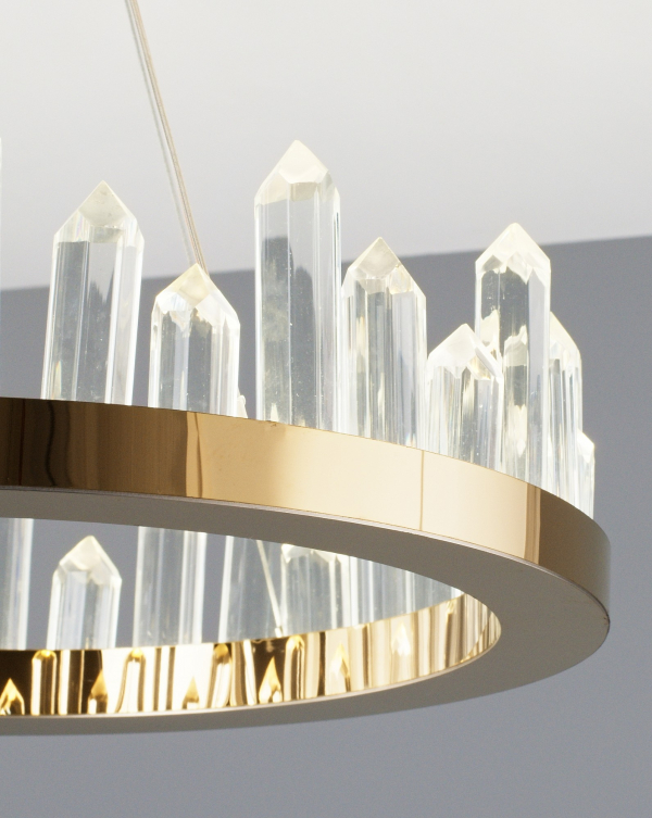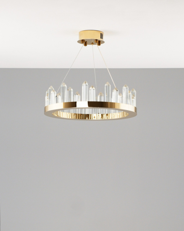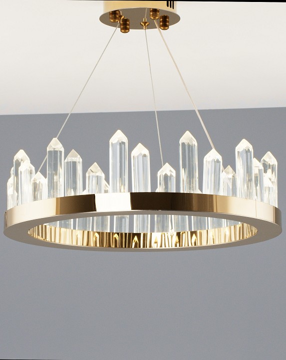Изделие V9050-PL от итальянского бренда Moderli относится к коллекции Ingrid и отлично подойдет для установки на потолок спальни, оформленной в стиле модерн. Осветительный элемент встроен в конструкцию и не требует приобретения дополнительных лампочек. Основными материалами для производства используется хрусталь и сталь и может использоваться для натяжного потолка. Преимущественно представляется в цвете Золотой и Прозрачный.