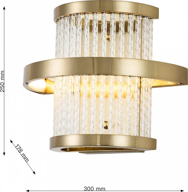 Изделие 2995-1W от немецкого бренда Favourite относится к коллекции Arena и отлично подойдет для настенной установки в гостиной, оформленной в стиле модерн. Осветительный элемент встроен в конструкцию и не требует приобретения дополнительных лампочек. Основными материалами для производства используется стекло и металл. Преимущественно представляется в цвете Латунный и Прозрачный.
