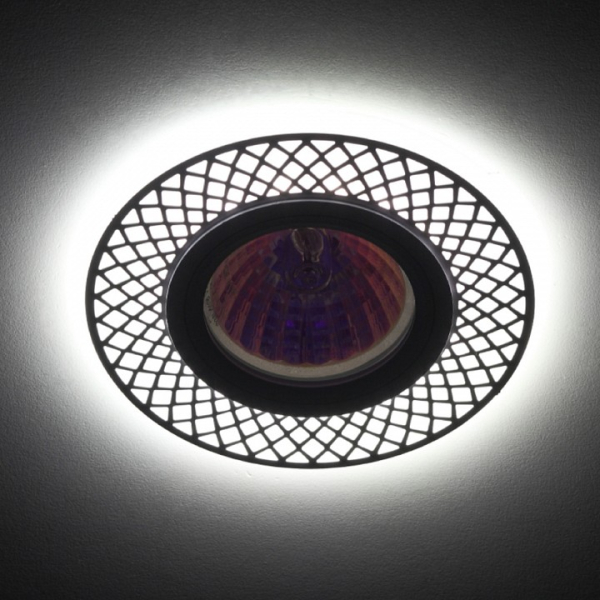 Встраиваемый светильник Б0048938 из коллекции DK LD42 китайского бренда Эра для установки в гостиную, кабинет, прихожую или спальню. Основание светильника белое, хром матовое из металла и стекла. Модель оснащена лампой с цоколем GU5.3 и светодиодной посветкой, общей мощностью 53W. Цветовая температура лампы 4000K (белый). Крепление к потолку на прижимных скобах. Габариты светильника: глубина – 25 мм, диаметр – 95 мм. Размер врезного отверстия – 75 мм.