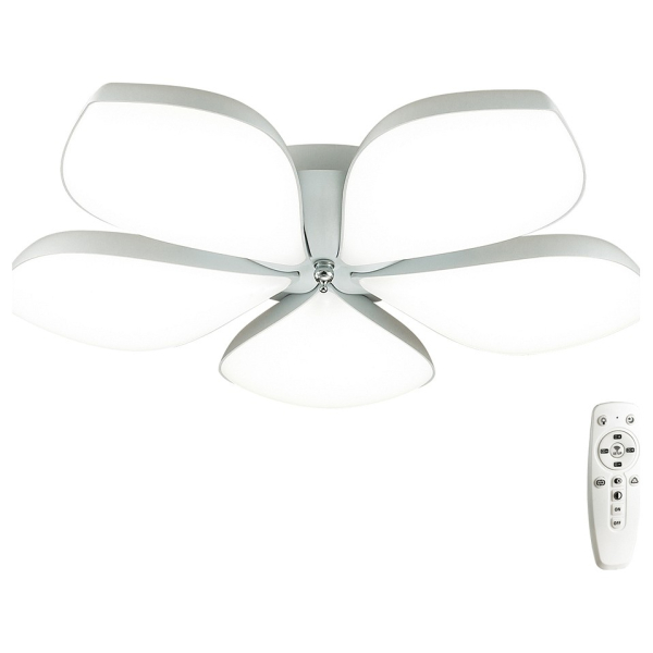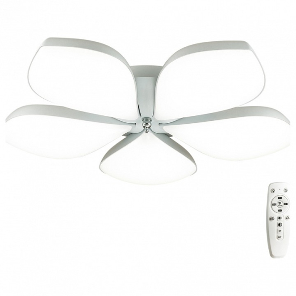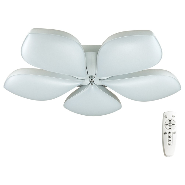 Изделие 3645/60CL от итальянского бренда Lumion относится к коллекции Gabriella и отлично подойдет для установки на потолок спальни, оформленной в стиле флористика. Осветительный элемент встроен в конструкцию и не требует приобретения дополнительных лампочек. Основными материалами для производства используется пластик, металл и акрил и может использоваться для натяжного потолка. В комплект поставки входит пульт дистанционного управления. Преимущественно представляется в цвете Белый.