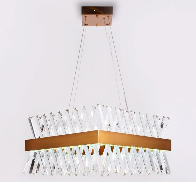 Изделие TR5318 от российского бренда Ambrella light относится к коллекции Traditional и отлично подойдет для установки на потолок спальни, оформленной в стиле арт-деко. Подвесной светодиодный светильник Ambrella light Traditional TR5318 с квадратными плафонами осветит помещение площадью 18 кв. м. холодным светом. Осветительный элемент встроен в конструкцию и не требует приобретения дополнительных лампочек. Основными материалами для производства используется хрусталь и металл и может использоваться для натяжного потолка. Преимущественно представляется в цвете Золотой и Прозрачный.